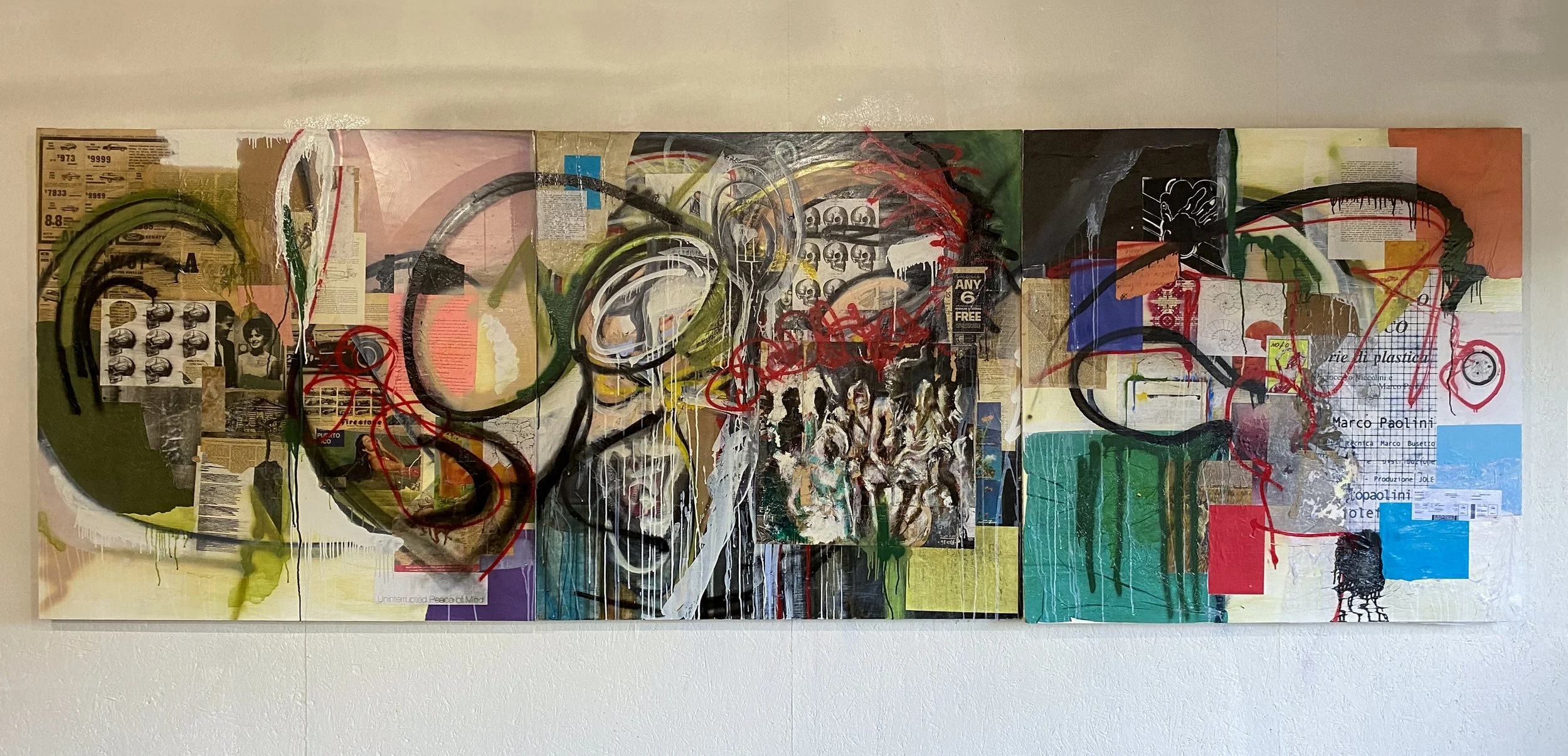 From these digitally enhanced compositions, I craft prints that I use to collage back into the original painting, a reflection of the intricate interplay between the tangible and the intangible, the analog and the digital. It's a dynamic approach that bridges artistic traditions with cutting-edge technology, pushing the boundaries of expression and opening doors to unforeseen dimensions of creativity and randomness.